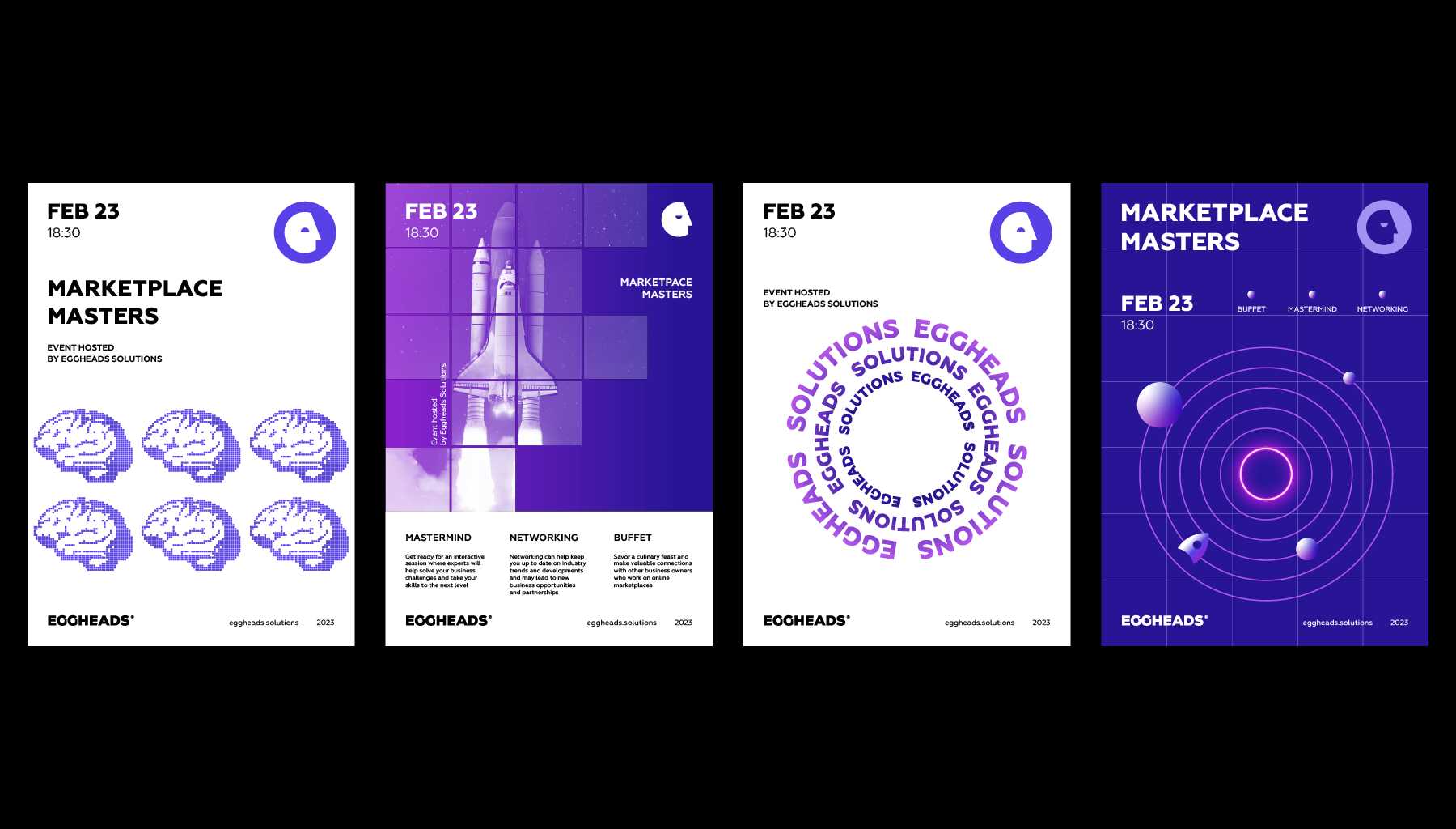 Eggheads — платформа для управления бизнесом на маркетплейсах. Название "Eggheads" отражено в эмблеме дизайна бренда с помощью изображения человеческой головы. Брендинг включает элементы космоса и планет, которые представляют связь с передовыми технологиями и умными, вдохновенными лидерами. Дизайн призван передать инновационный и амбициозный характер, быть легко узнаваемым и идентифицируемым. Проект включает в себя эмблему бренда, цветовую палитру, типографику и визуальные элементы, которые будут использоваться в маркетинговых материалах.