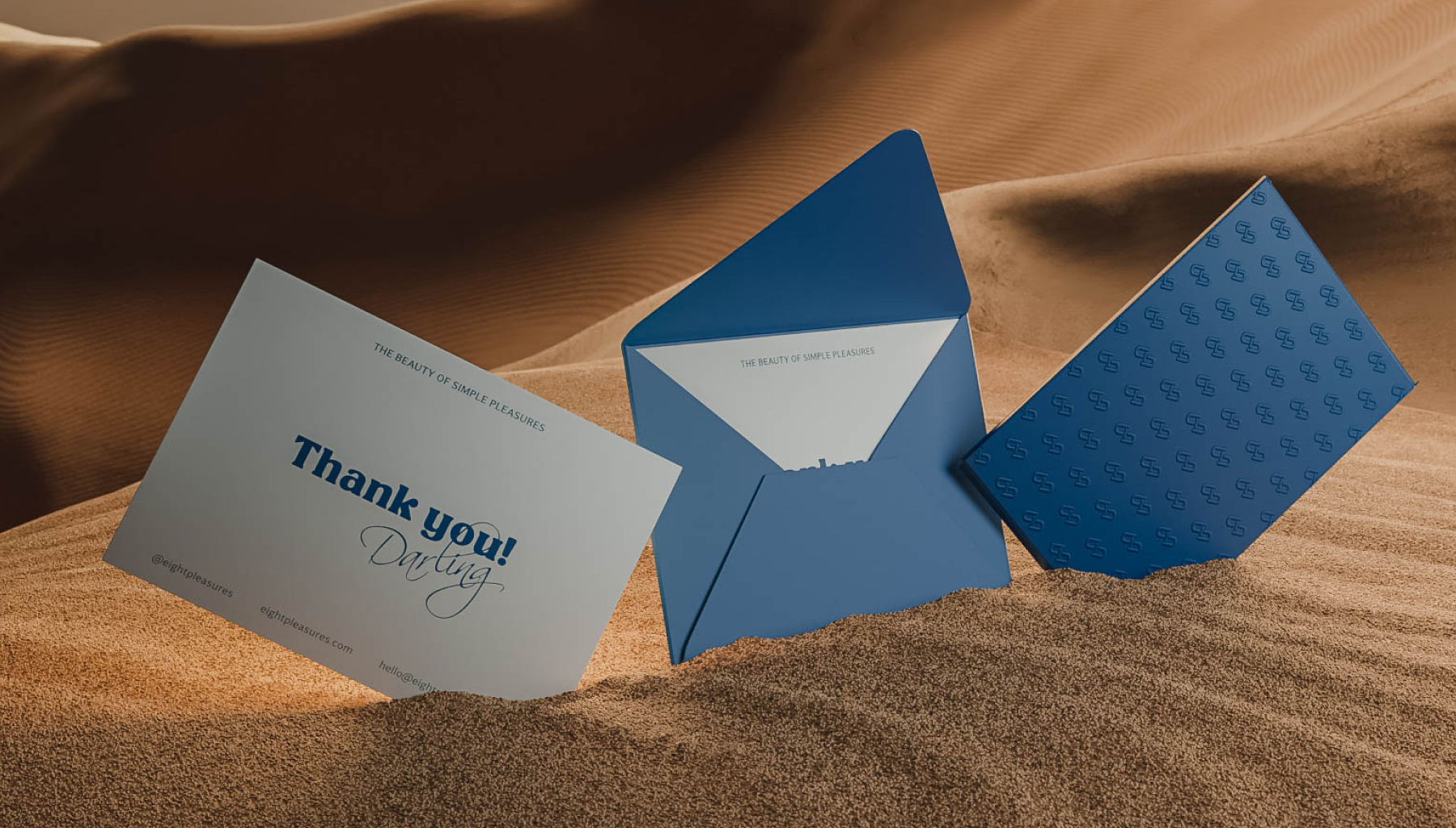 Клиент обратился к нам с инициативой изменить фирменный стиль на более выделяющийся среди конкурентов. Предыдущий вариант фирменного стиля был разработан клиентом для тестирования продукта, не вызывал доверия у клиентов и не выделялся среди их конкурентов. После брейншторминга в нашей команде, нами было принято решение заменить способ написания названия в логотипе с 8 Pleasures на полностью буквенный - Eight Pleasures, тем самым сделав название более необычным. Также мы разработали отдельный символ в виде цифры 8, состоящий из двух букв P - первой буквы в слове Pleasures. В качестве основного цвета бренда был выбран глубокий синий, как отсылка к спокойствию и удовольствию.