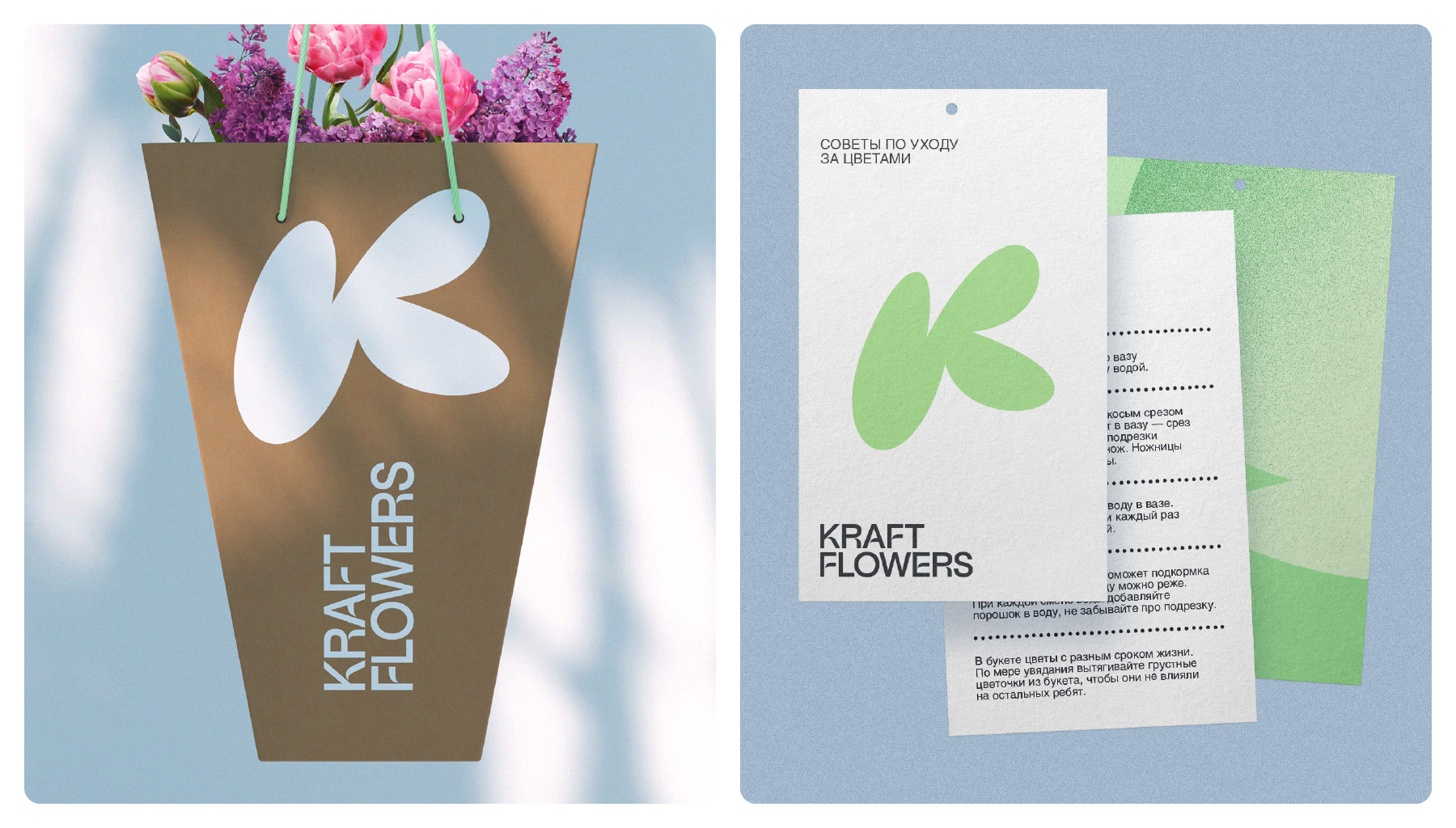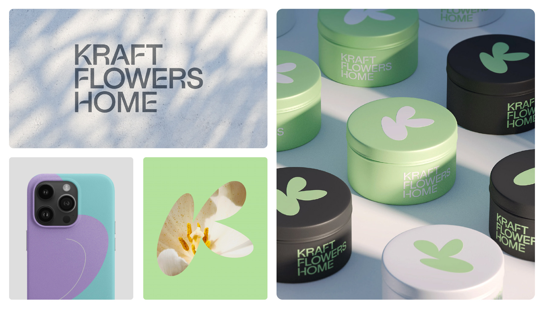 Компания планомерно развивает сервис и продуктовое предложение: Kraft Flowers — это флористика, а также товары для дома и кофейня. Чтобы успешно общаться с аудиторией, которая выросла вместе со студией, потребовалось уточнить позиционирование и создать стройную систему визуальной идентификации.