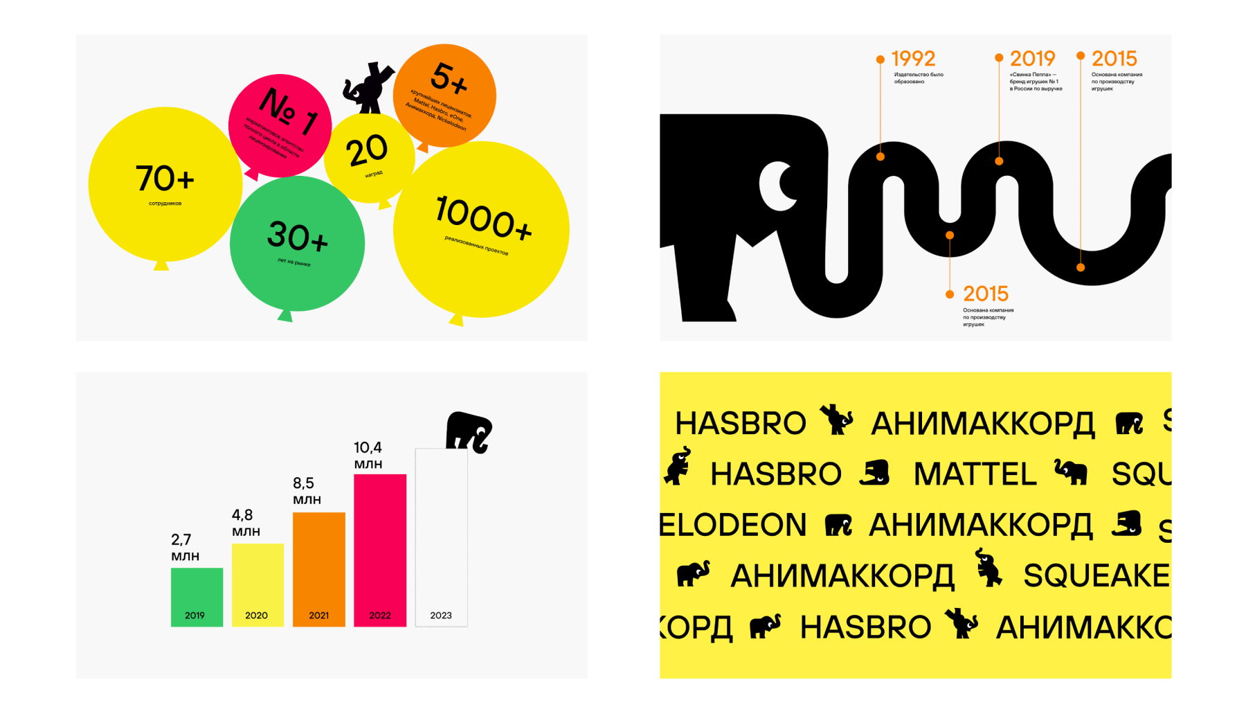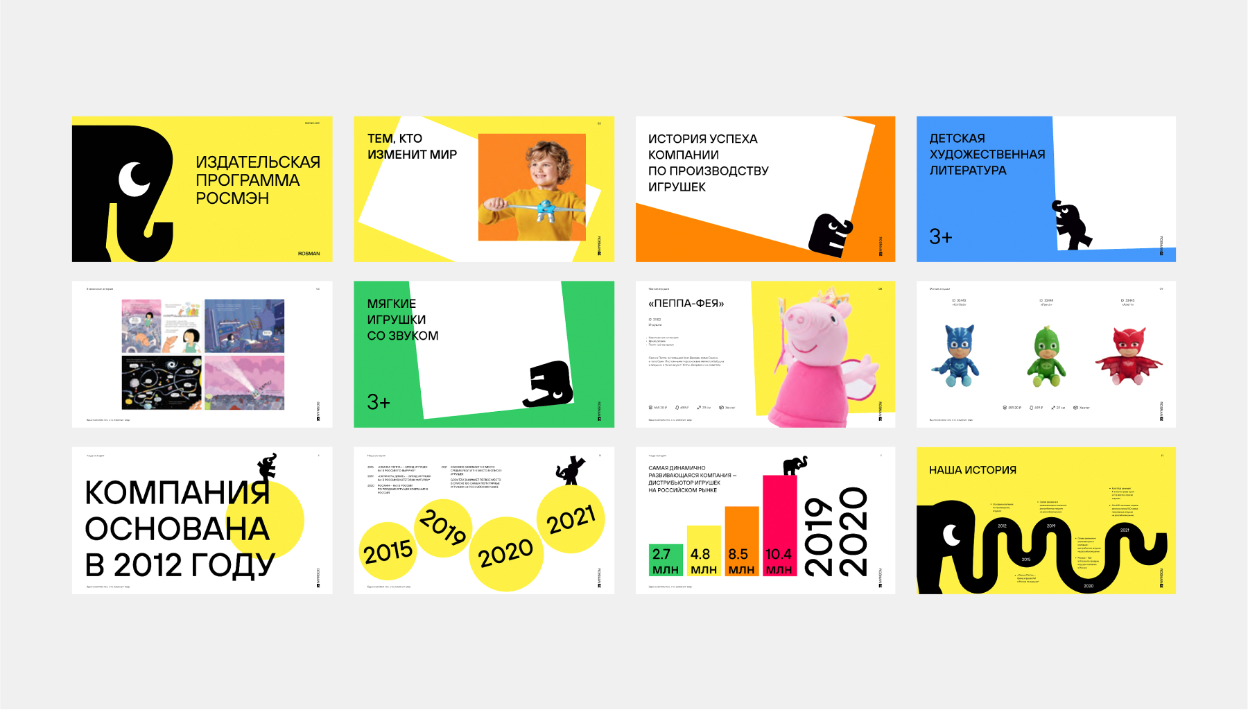 Компания «Росмэн» работает с молодым поколением, которому принадлежит будущее. Они изменят этот мир. 30 лет «Росмэн» создаёт захватывающие истории и игровые миры для детей, чтобы вдохновлять их на новые открытия. Ребрендинг крупного российского издательства, которое всю их историю называли «издательство со слоном». И спустя много лет образ циркового слона с шариками превратился в интересного живого персонажа, который живёт, играет, веселится и развлекает.
