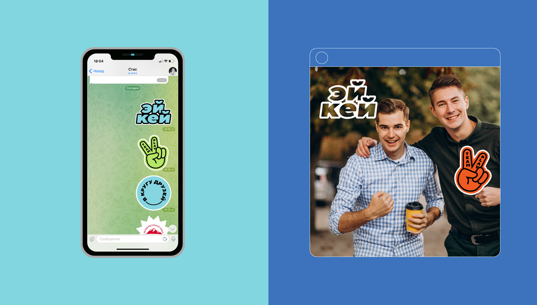Всё это позволило нам разработать гипотезу позиционирования и связанную с ней метафору бренда — «Социальная сеть». Логическим продолжением метафоры стала визуальная концепция: «шейпы», «месседжи», стикеры, дружелюбный шрифт TT Trailers, мягкая цветовая палитра. И конечно же слоган — «Добавляйся в друзья!».