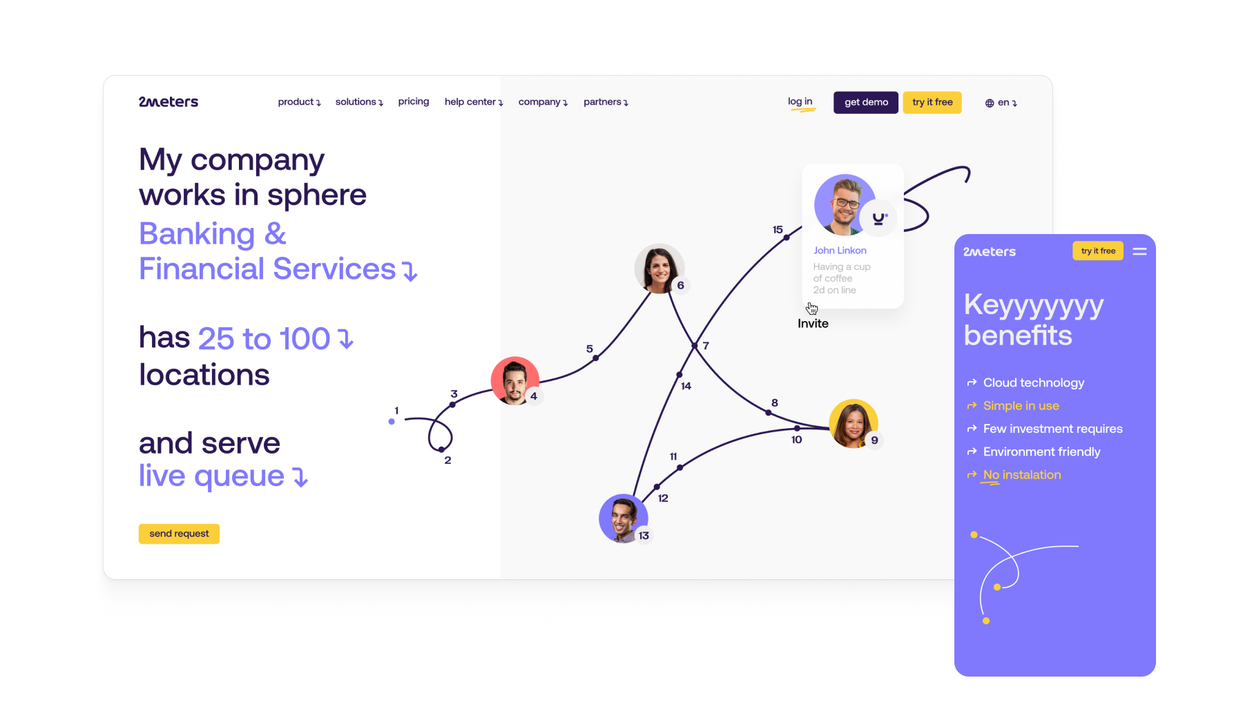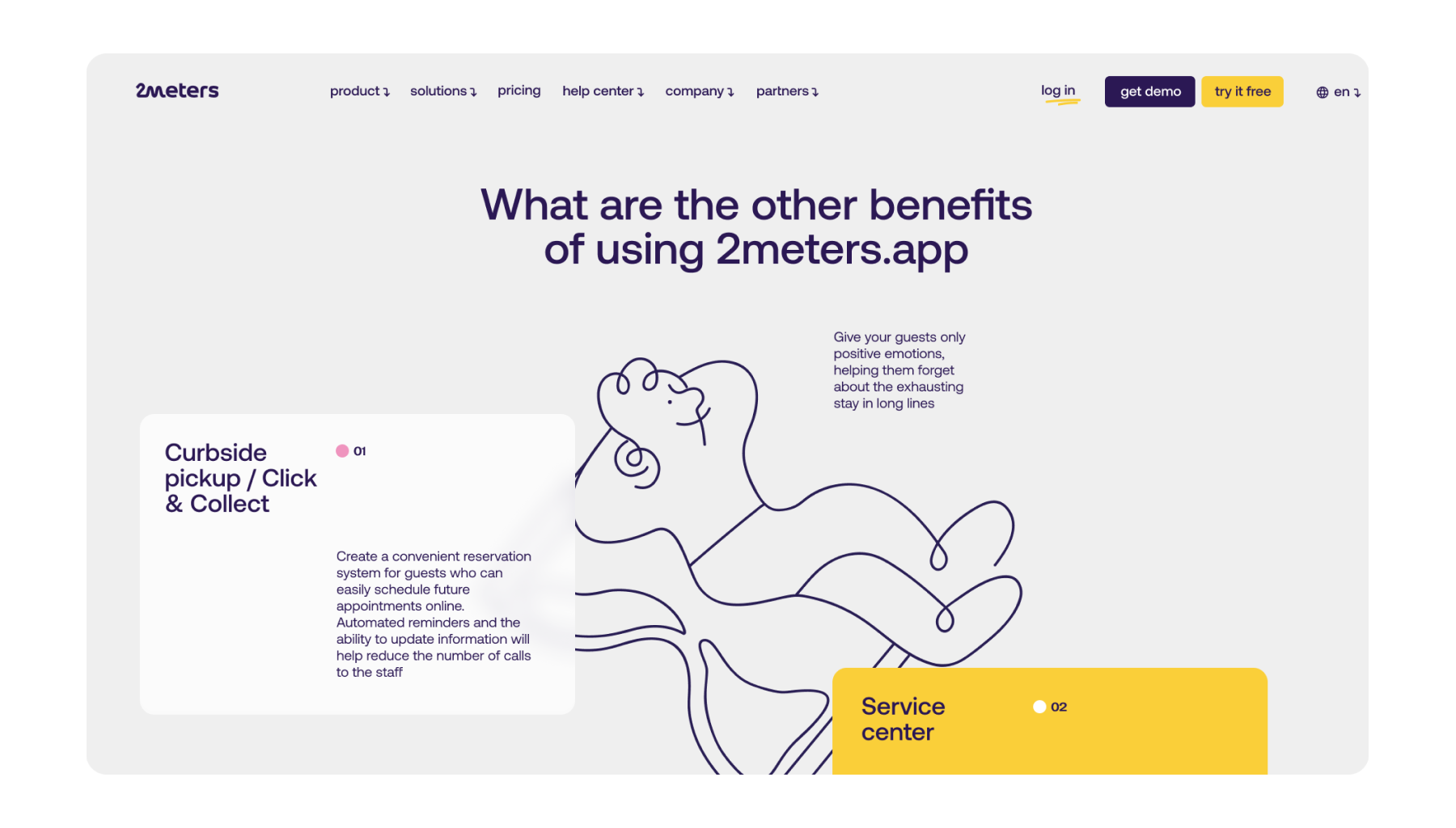 2Meters – простой и доступный сервис цифровых очередей. Приложение позволяет ритейлу, ресторанам, центрам обслуживания и пунктам аренды уменьшить время ожидания и избежать толкучки, тем самым повысив ценность услуг и сократив отток клиентов. В рамках этого кейса мы сделали для клиента полномасштабный ребрендинг: дизайн B2B-сайта, обновление логотипа, разработка иллюстраций и иконок, создание брендовой презентации и анимированного рекламного ролика.