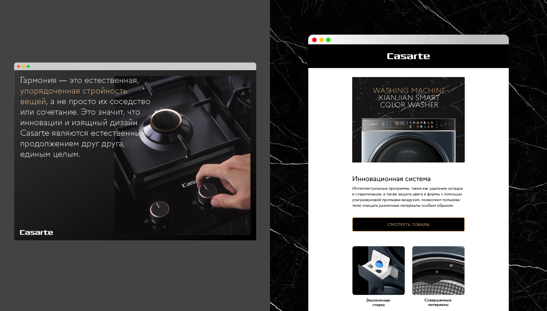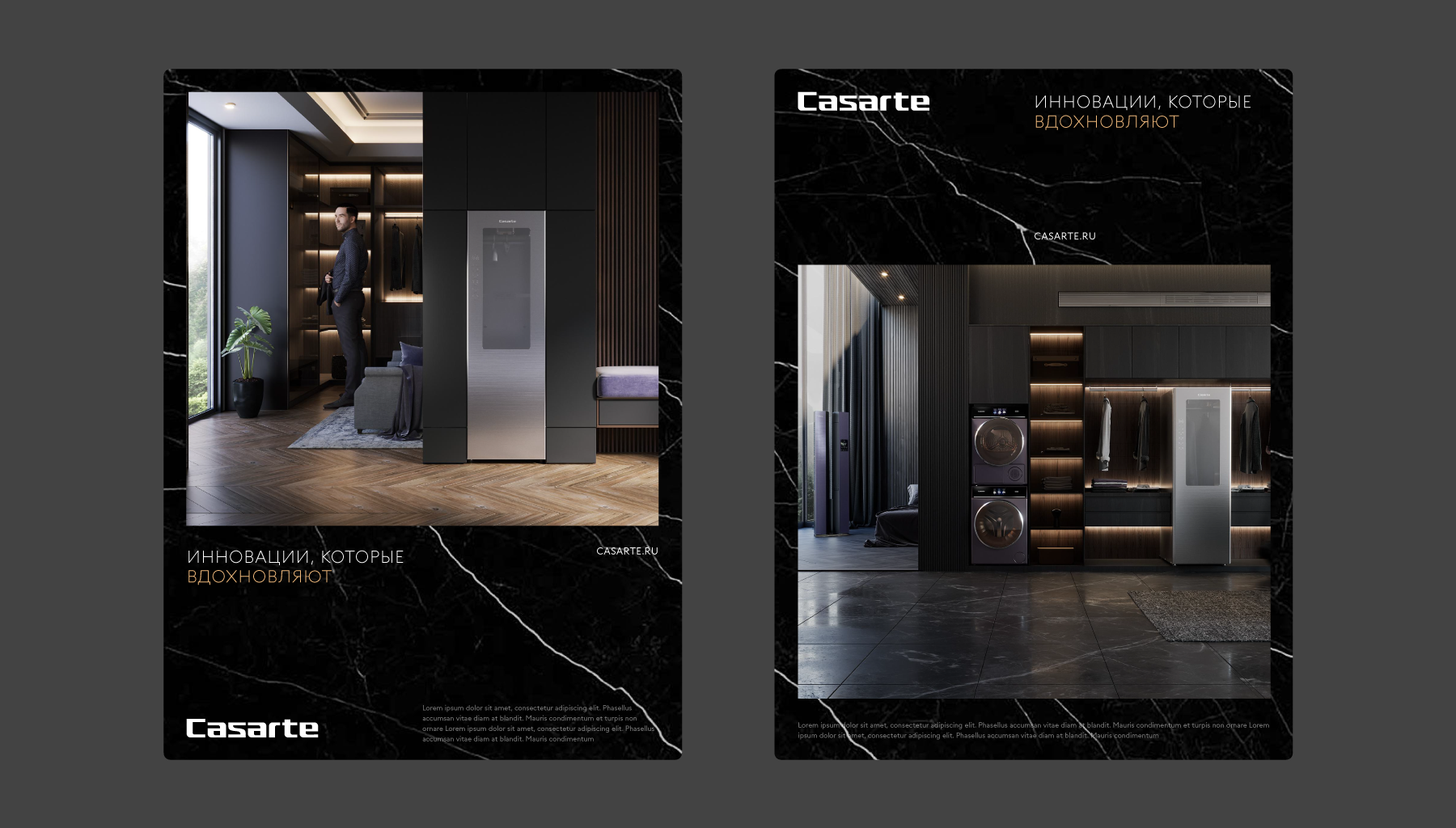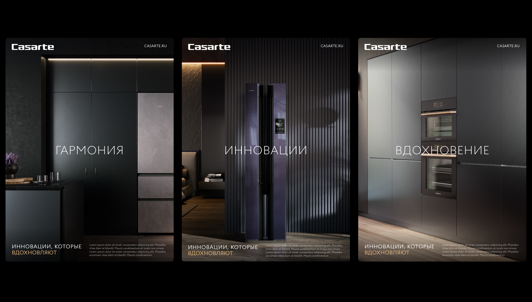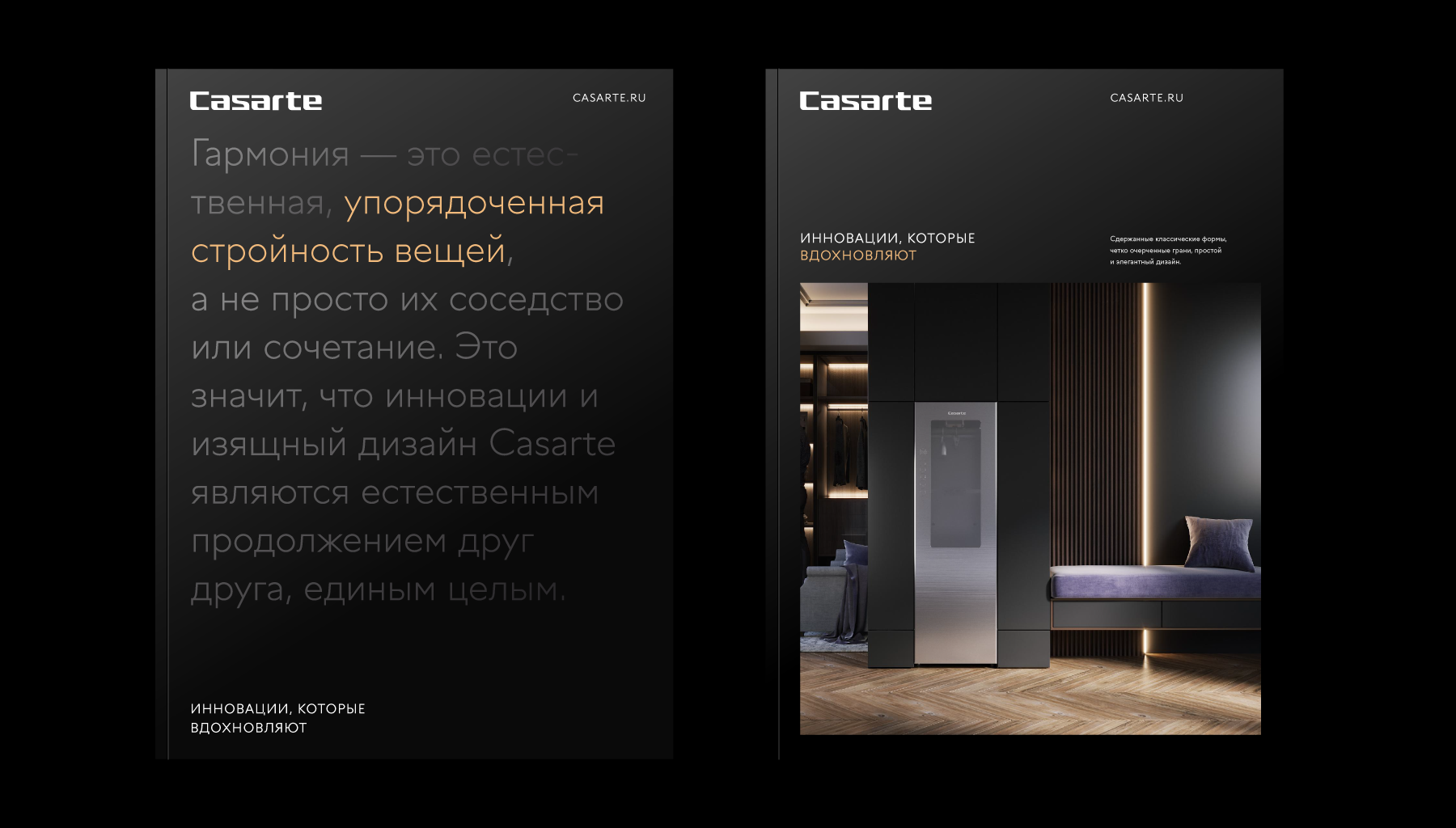 Дизайн-студия Design Department создала айдентику для Casarte — премиального бренда бытовой техники. Само название — casa с итальянского «дом», а arte «искусство» натолкнуло студию на поиск вдохновения в музеях и галереях. Так появился принцип паспарту — построение продуктовых макетов с большим свободным полем вокруг, чтобы направлять внимание. В них лайн становится своеобразной подписью, как обычно располагается экспликация по отношению к художественной работе в музее.