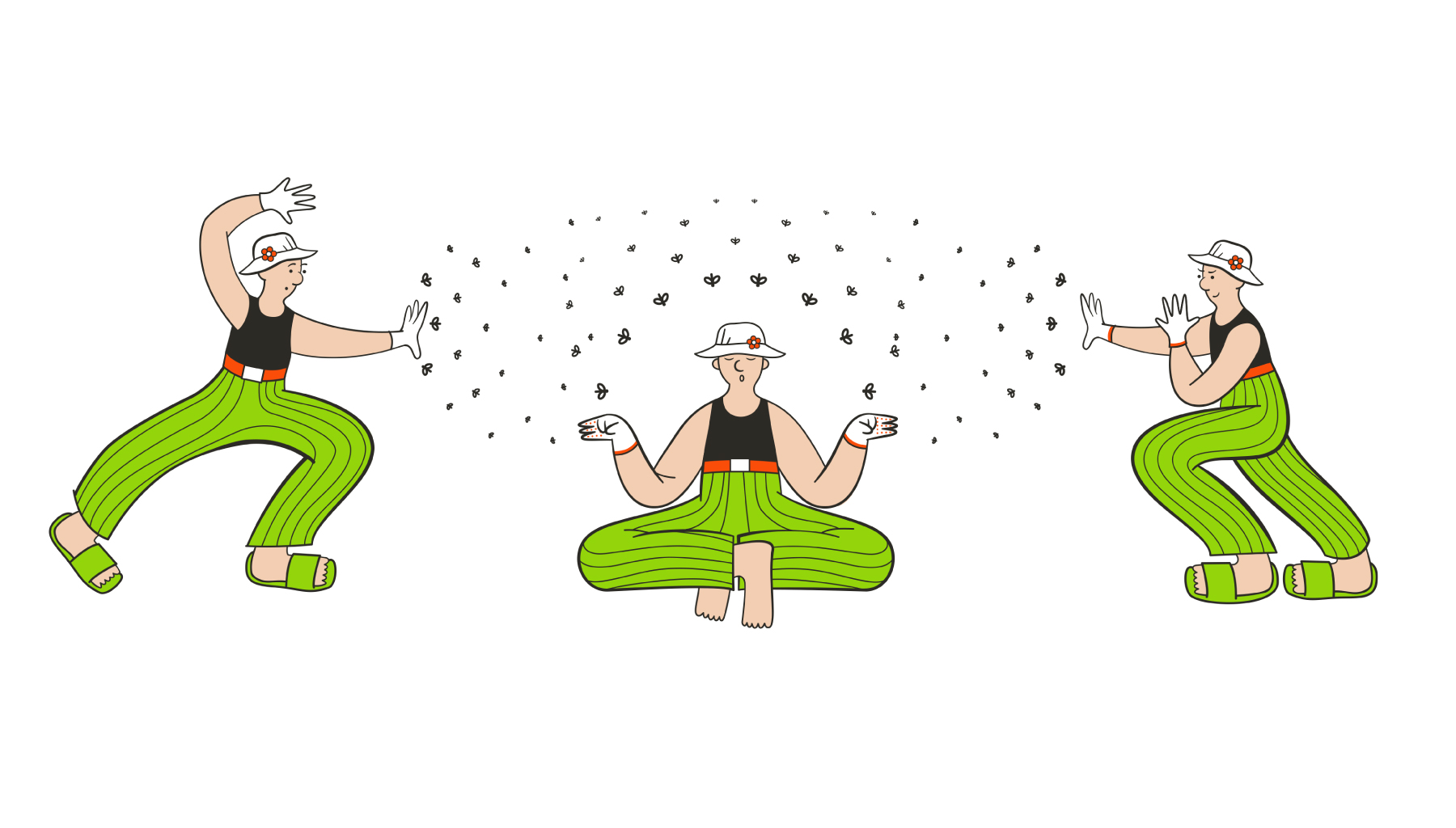Дизайн упаковки строится на минималистичном и человечном подходе. Мы разработали дружелюбных персонажей, которые нашли дзен в борьбе с насекомыми. Логотип тоже обрел новую гармонию. Буквы «Ф» превратились в графичных мушек, а начертание стало более современным. Характер шрифта рифмуется с мягкими линиями в иллюстрациях, а спокойная, но заметная палитра этикетки передает живое настроение обновленного бренда.