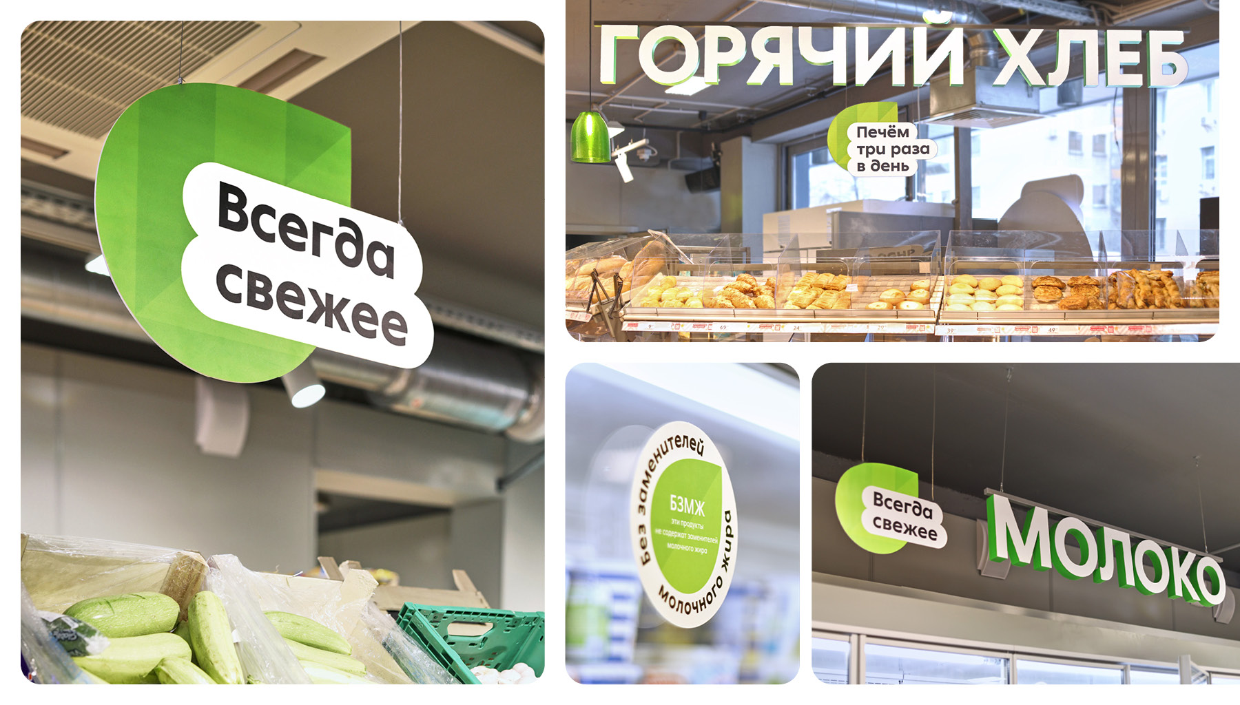 Все элементы складываются в лаконичную и легко считываемую систему носителей, хорошо заметных в буйной визуальной среде магазина.
