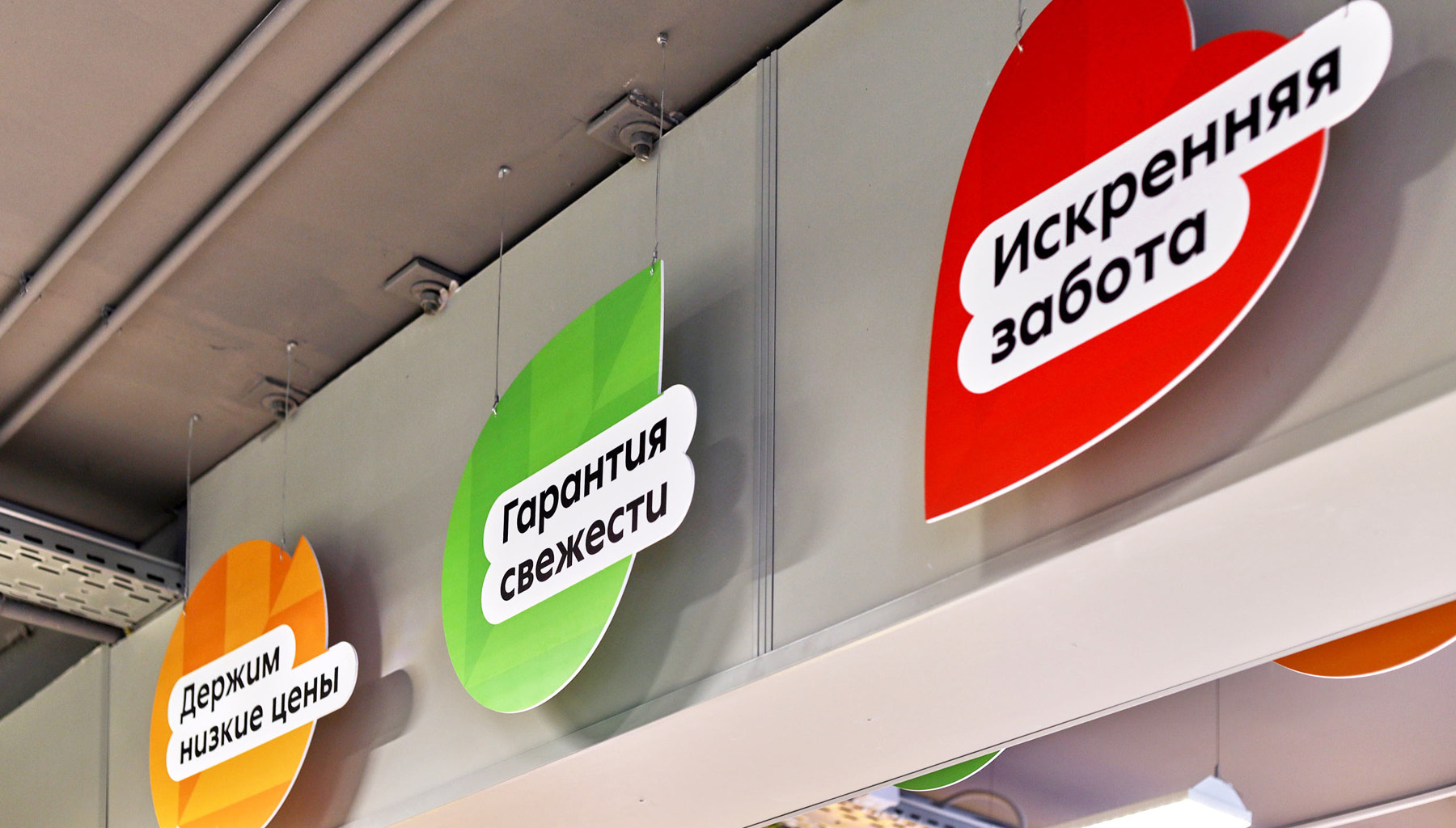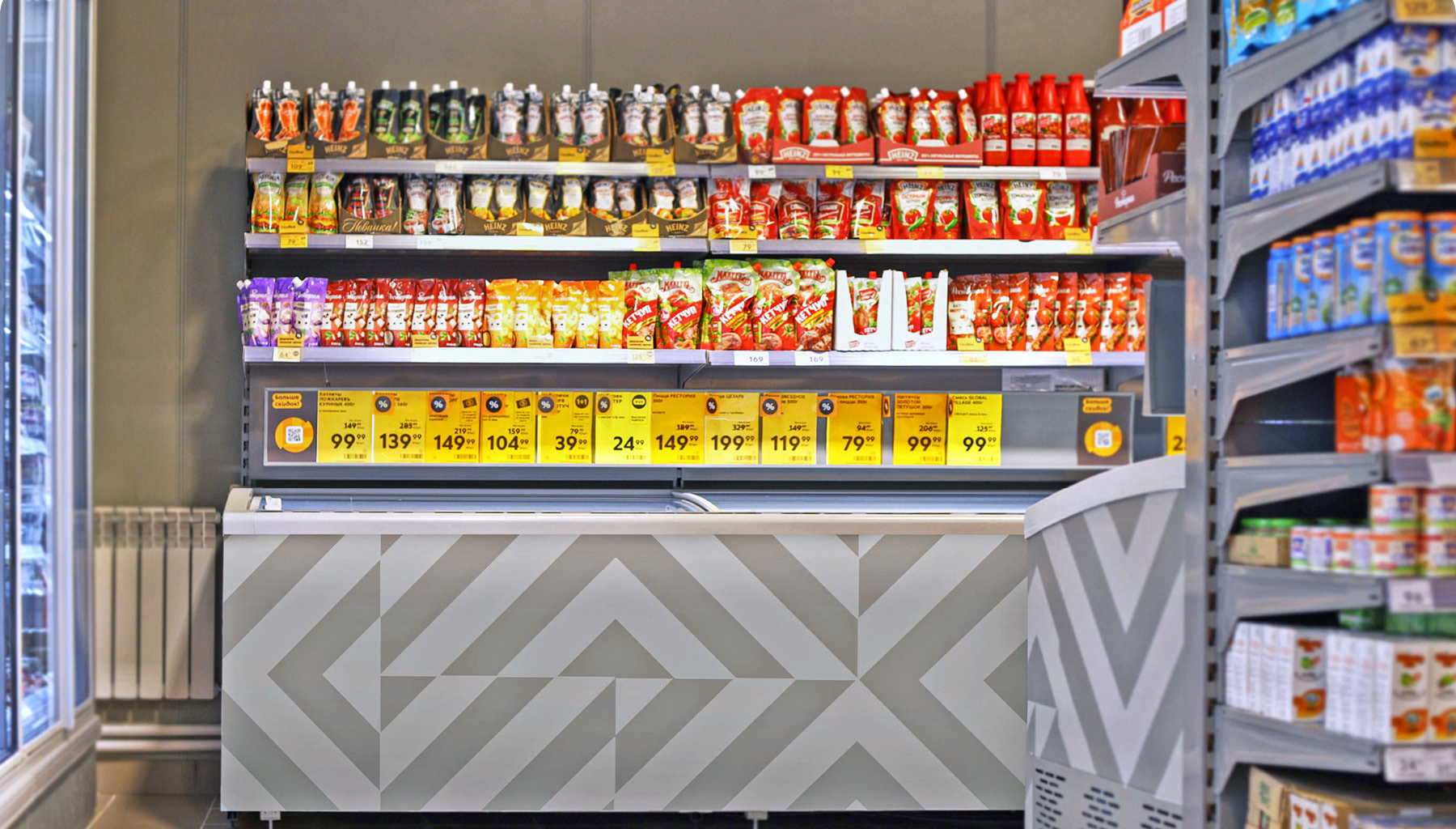 У «Пятёрочки» есть море всевозможных носителей для разных мест, ситуаций и товарных категорий. Мы тщательно их изучили, определили, что создает визуальный шум, и придумали, как сделать навигацию эффективной, а интерьеры — уютными.