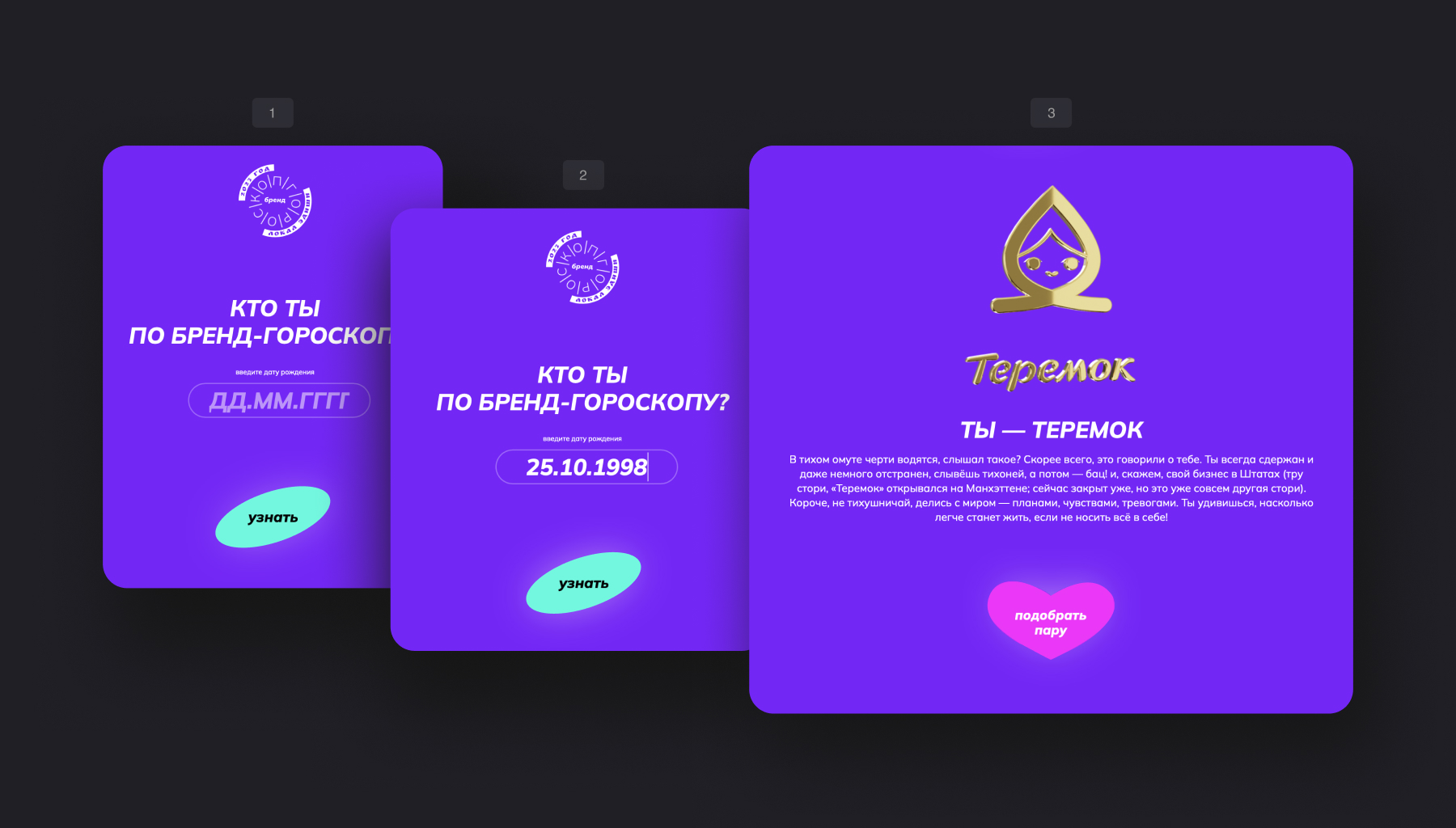 Это уже вторая, локализованная версия Бренд-гороскопа. Первая была посвящена известным мировым брендам и также доступна на сайте.