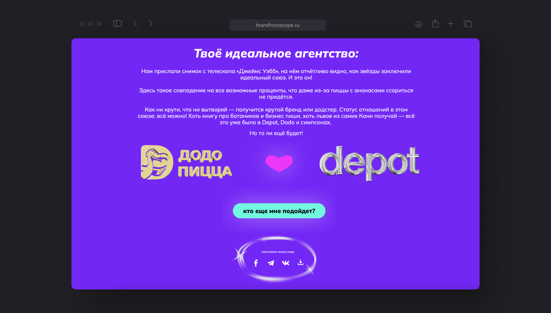 Теперь каждый может узнать, какой он бренд по гороскопу, и найти свою идеальную пару в виде креативного агентства.