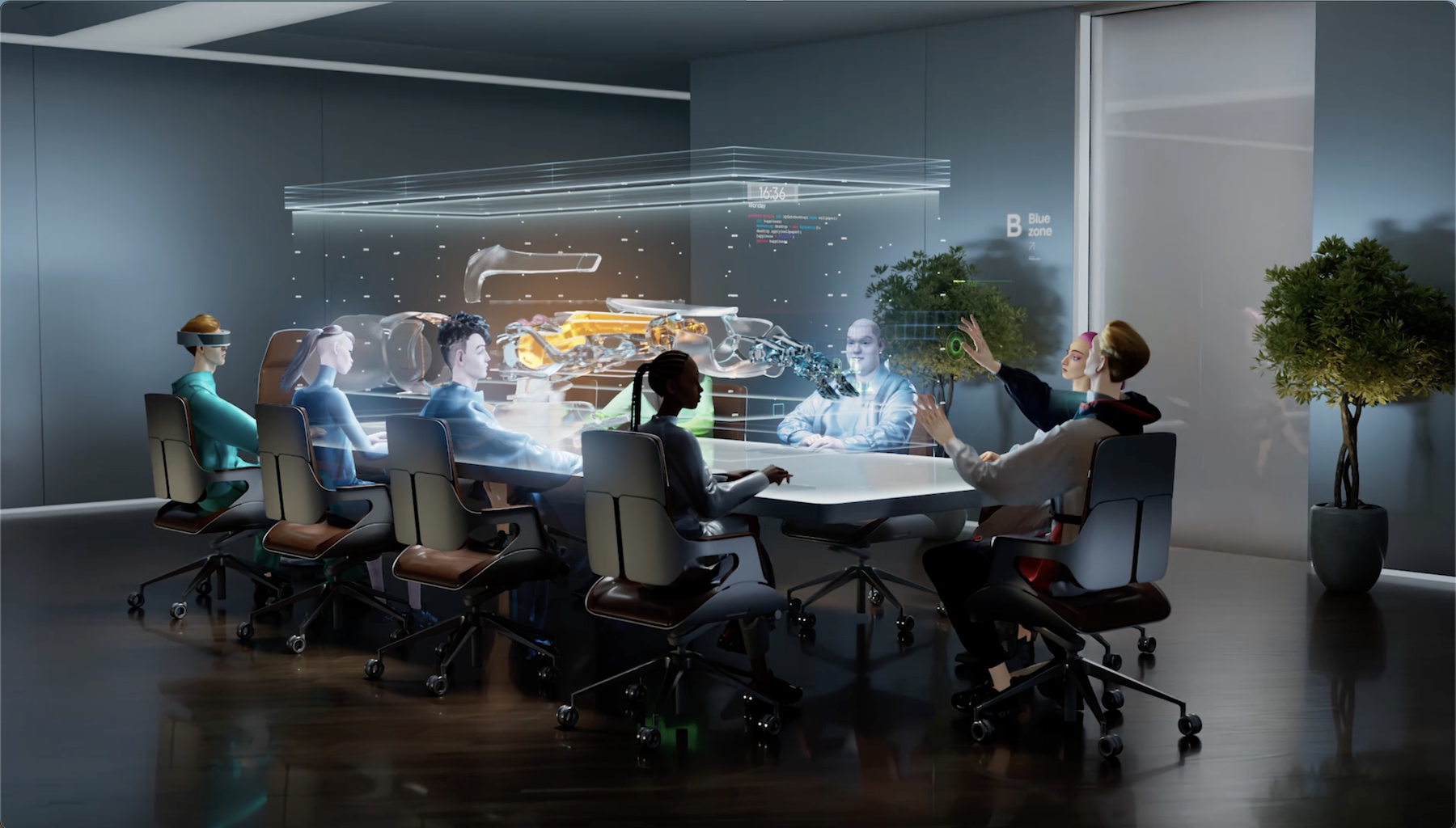 Тема будущего — самая желанная и благодатная для нас, как для студии графики. Но в этом проекте нашей задачей было не поразить зрителя навороченными технологиями и невиданными девайсами, а сфокусироваться на смысле и передать саму атмосферу, которая царит в безопасном офисе будущего.