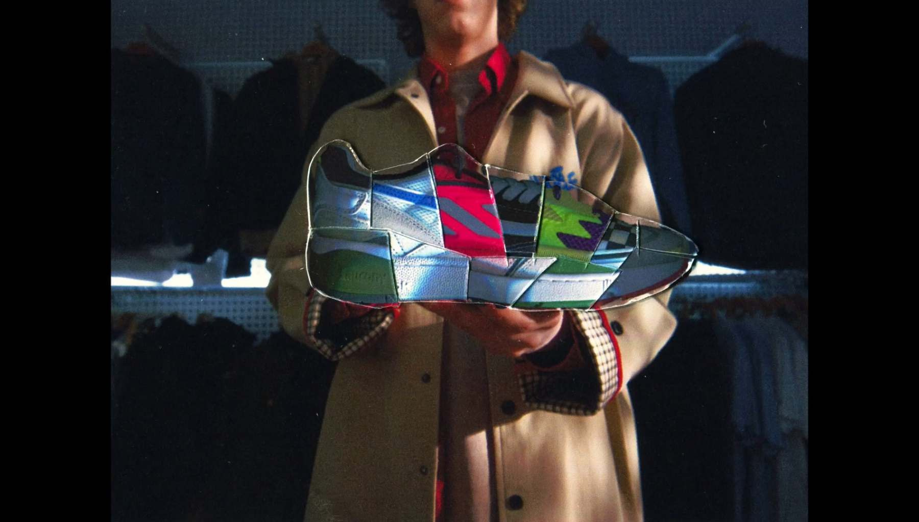 Одной из задач было снять много кроссовок, поэтому нами было отсканировано несколько десятков кроссовок, которые сопровождают весь ролик. А ещё почти вся графика отпечатана на бумаге и затем сколлажирована, чтобы показать крафтовый творческий подход и любовь бренда к кастомизации.